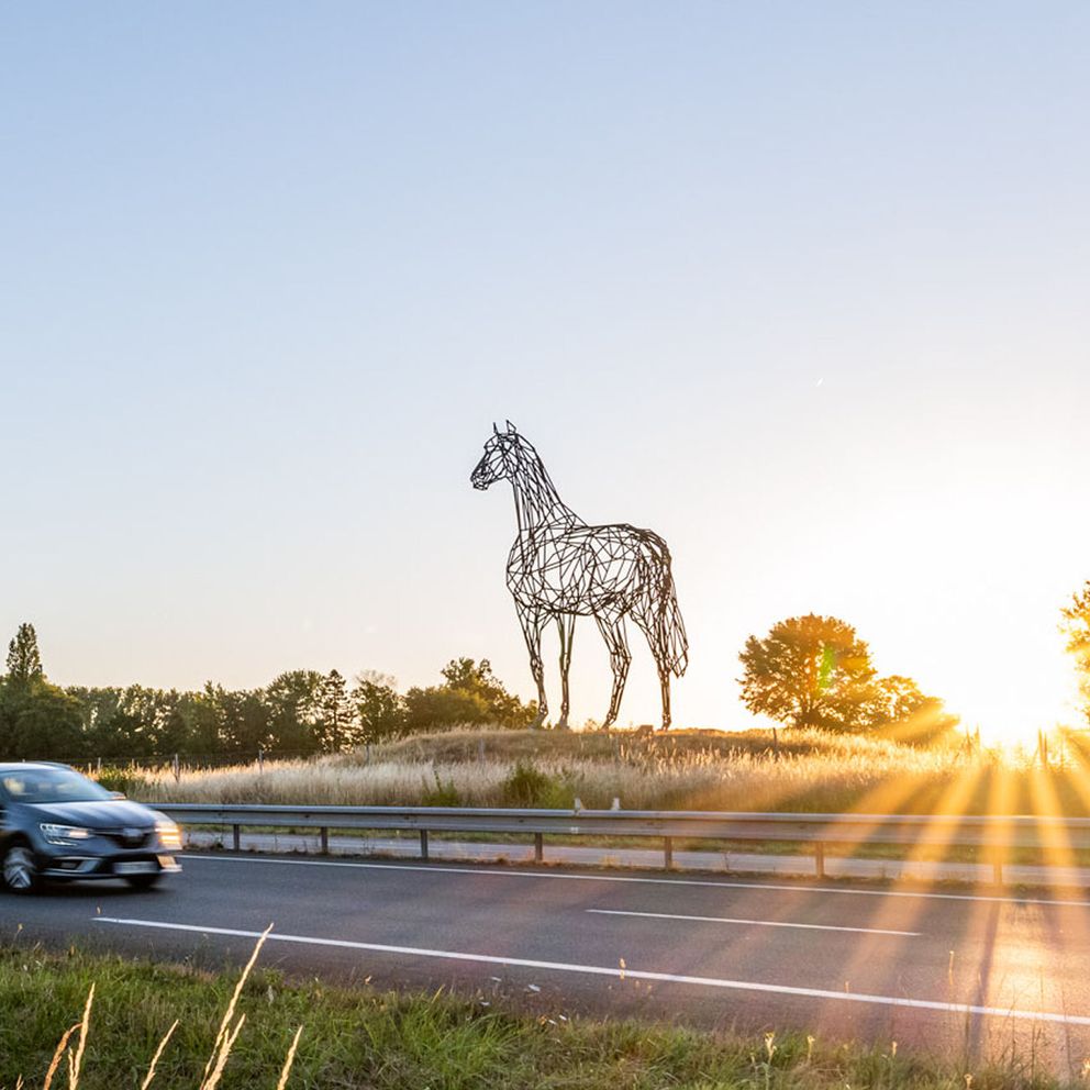 Archeval, l’une des plus grandes statues équines au monde, se trouve à Saumur, le long de l’autoroute A85